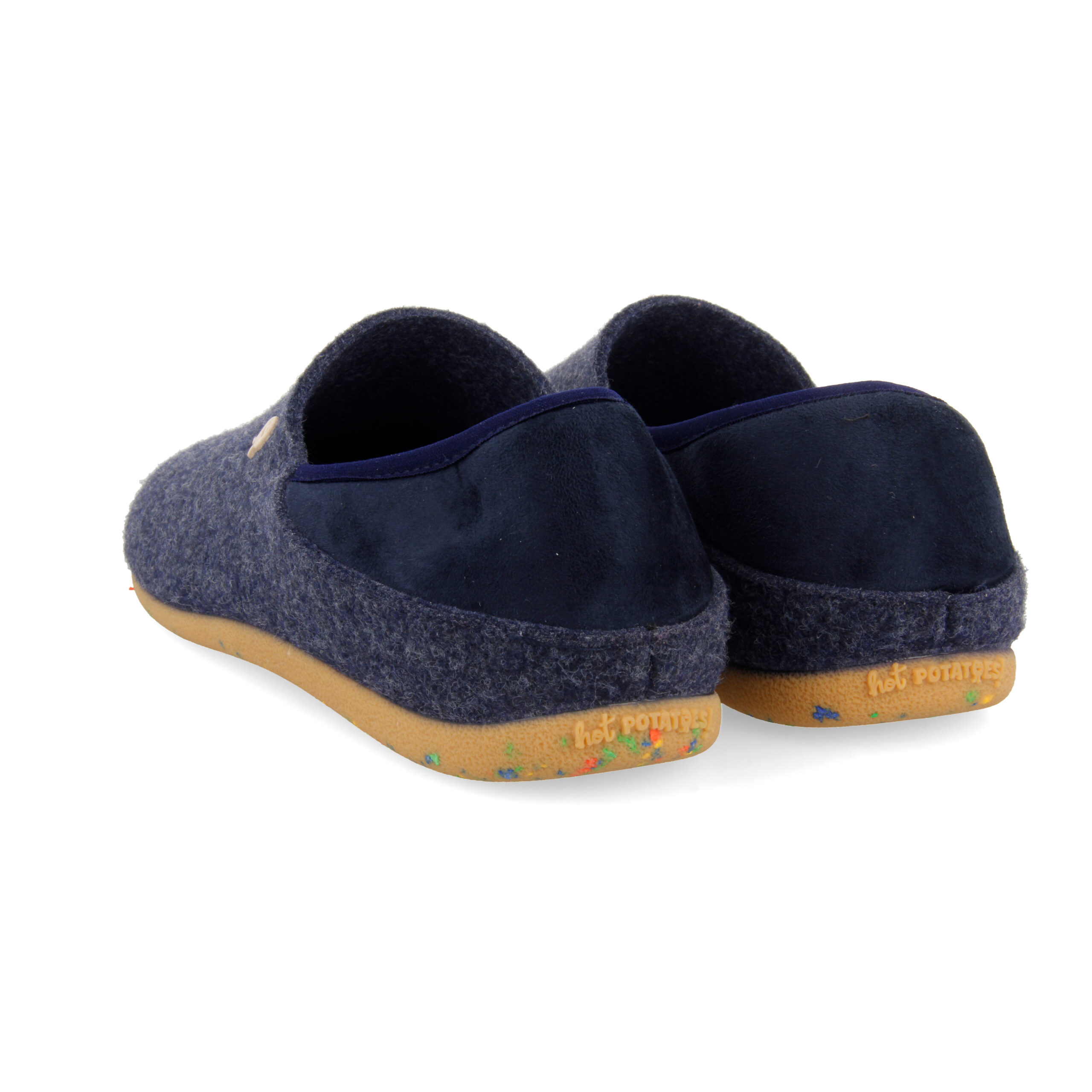 Een slof voor alle harde werkers! Je komt thuis en het eerste wat jij doet, is je Hot Potatoes aanschuiven. Het anatomische voetbed in combinatie met de stevige buitenzool zorgt voor de steun die jouw voeten nodig hebben. Nog een voordeel: je kunt deze sloffen op 2 manieren dragen, met en zonder haksluiting. – Hot Potatoes pantoffel voor heren. Comfortabel en Made in Spain. Vervaardigd van polyester en de zool is van natuurlijk rubber met gerecyclede kunststof snippers. Met uitneembare inlegzool van 100% gerecycled PU. Hot Potatoes zijn koud wasbaar.
